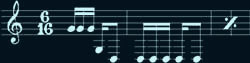 با تأكيد بيشتر و قويتر از ساير مضرابها نواخته شده و بخشِ ريز كه با كمي تأخير