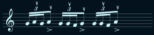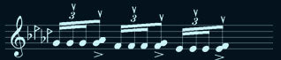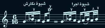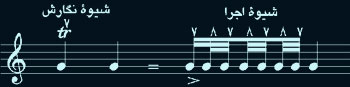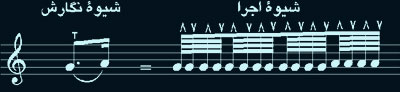 كه سه مضراب ريز در اين تكنيك اغلب بهصورت نتهاي زينت اجرا